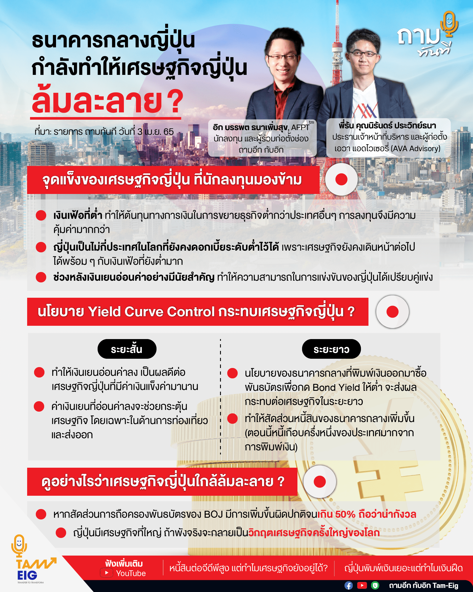 คุณรัน คุณนิรันดร์ ประวิทย์ธนา ประธานเจ้าหน้าที่บริหาร และผู้ก่อตั้งเอวา แอดไวเซอรี่ (AVA Advisory) ได้ออกมาพูดถึงสเน่ห์ของญี่ปุ่นที่นักลงทุนมองข้ามว่า เศรษฐกิจญี่ปุ่นตอนนี้เข้าสู่ภาวะชะงักงันมาร่วมกว่า 3 ทศวรรษแล้ว ทำให้ญี่ปุ่นเป็นไม่กี่ประเทศในโลกที่ยังคงดอกเบี้ยระดับต่ำไว้ได้ เพราะเศรษฐกิจยังคงเดินหน้าต่อไปได้พร้อม ๆ กับเงินเฟ้อที่ยังต่ำมาก เงินเฟ้อที่ต่ำทำให้ต้นทุนทางการเงินในการขยายธุรกิจต่ำกว่าประเทศอื่นๆ การลงทุนจึงมีความคุ้มค่ามากกว่า นอกจากนี้สิ่งที่เกิดขึ้นในช่วงหลัง ๆ ก็คือ ค่าเงินเยนเริ่มมีการอ่อนค่าอย่างมีนัยสำคัญ ทำให้ความสามารถในการแข่งขันของญี่ปุ่นเพิ่มสูงขึ้นเมื่อเทียบกับคู่แข่ง