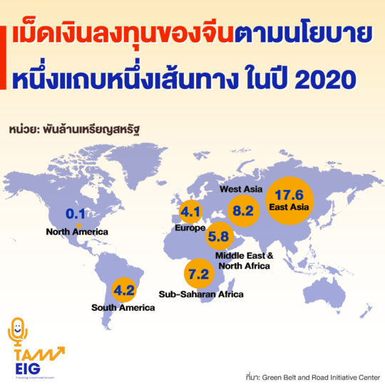 เม็ดเงินลงทุนของจีนตามนโยบาย หนึ่งแถบหนึ่งเส้นทาง ในปี 2020