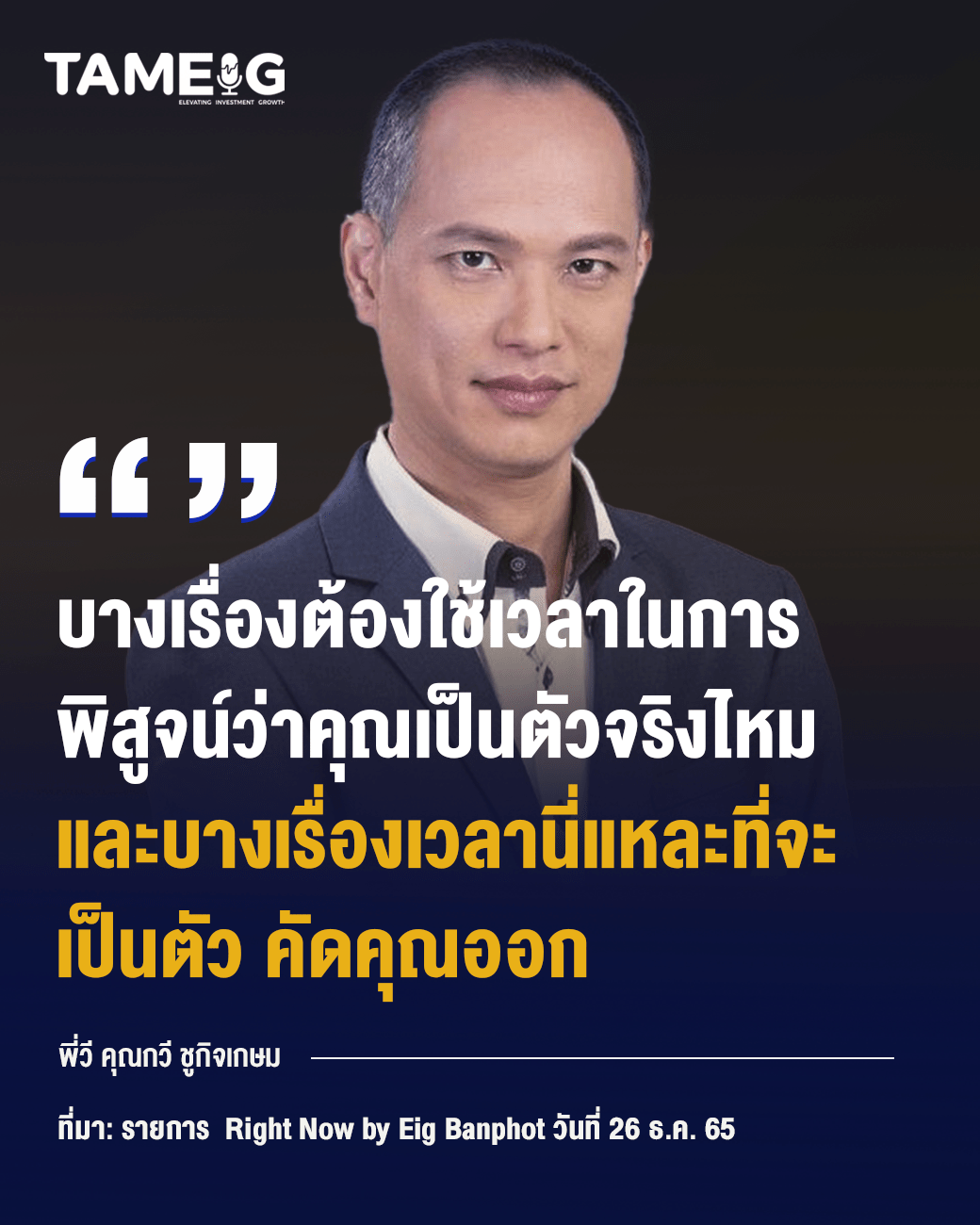 บางเรื่องต้องใช้เวลาในการพิสูจน์ว่าคุณเป็นตัวจริงไหม และบางเรื่องเวลานี่แหละที่จะเป็นตัว คัดคุณออก