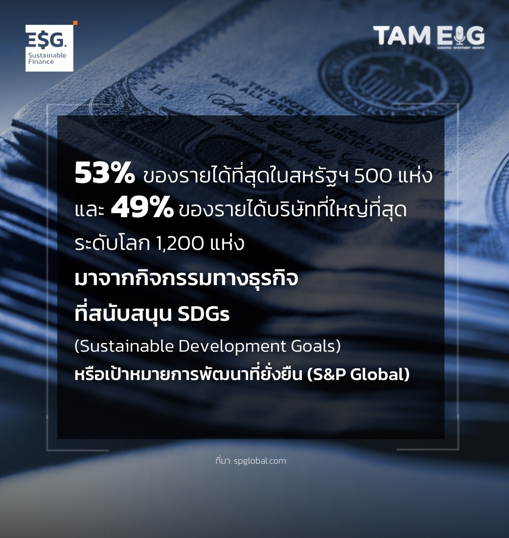 53% ของรายได้บริษัทที่ใหญ่ที่สุดในสหรัฐฯ 500 แห่ง และ 49% ของรายได้บริษัทที่ใหญ่ที่สุดระดับโลก 1,200 แห่ง มาจากกิจกรรมทางธุรกิจที่สนับสนุน SDGs