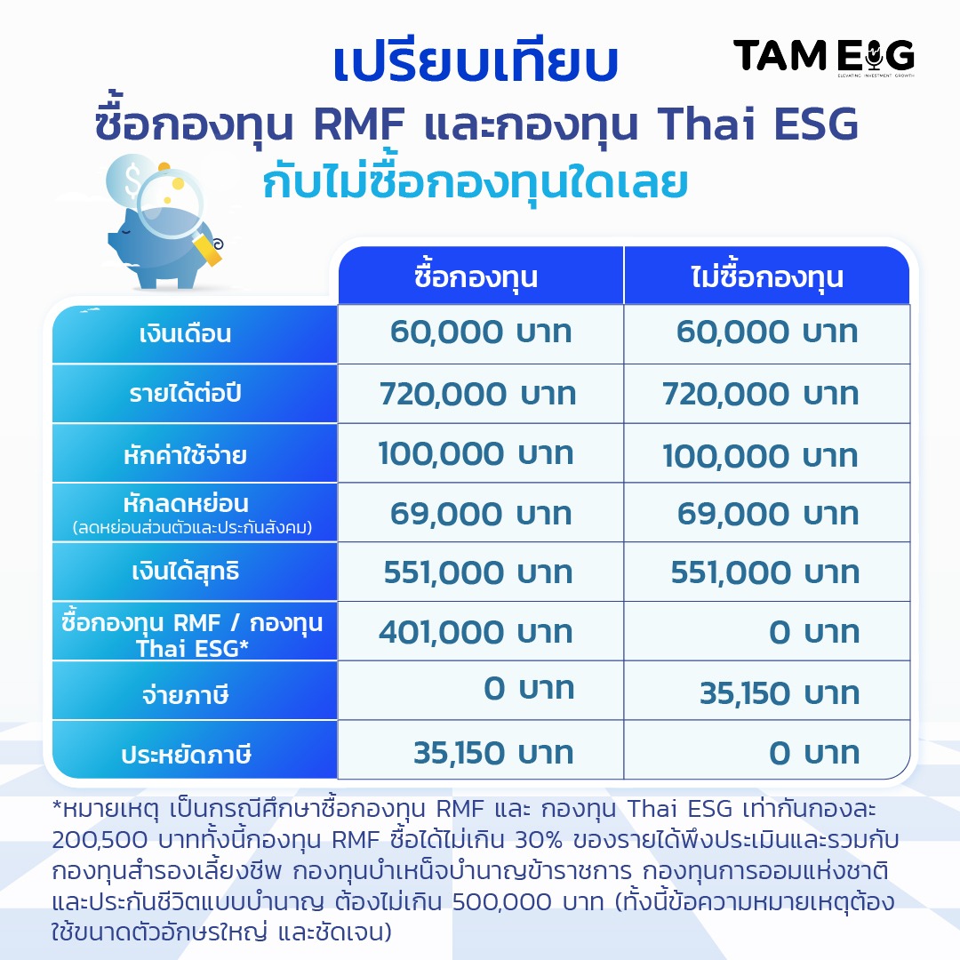 สรุปคือ ให้ RMF เป็น “พอร์ตหลัก” ของการเกษียณ ส่วน Thai ESG เป็น “พอร์ตเสริม” ที่ช่วยให้ SAVE ภาษี มากขึ้น