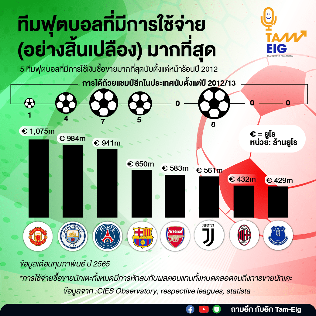 ทีมฟุตบอลที่มีการใช้จ่าย (อย่างสิ้นเปลือง) มากที่สุด⁣