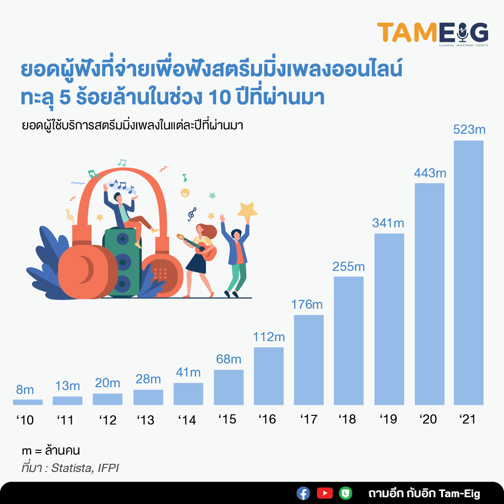 ยอดผู้ฟังที่จ่ายเพื่อฟังสตรีมมิ่งเพลงออนไลน์ทะลุ 5 ร้อยล้านในช่วง 10 ปีที่ผ่านมา⁣⁣