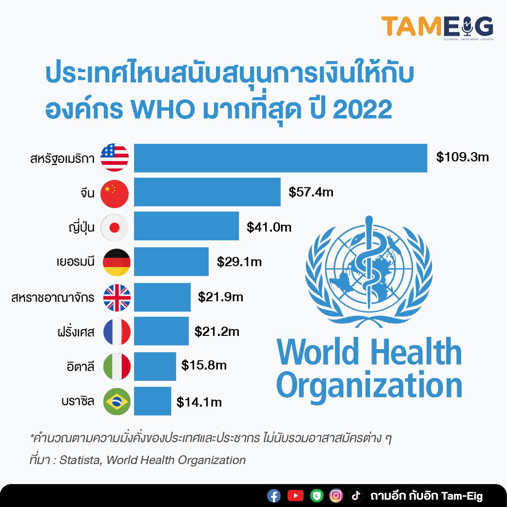 ประเทศไหนสนับสนุนการเงินให้กับองค์กร WHO มากที่สุด ปี 2022